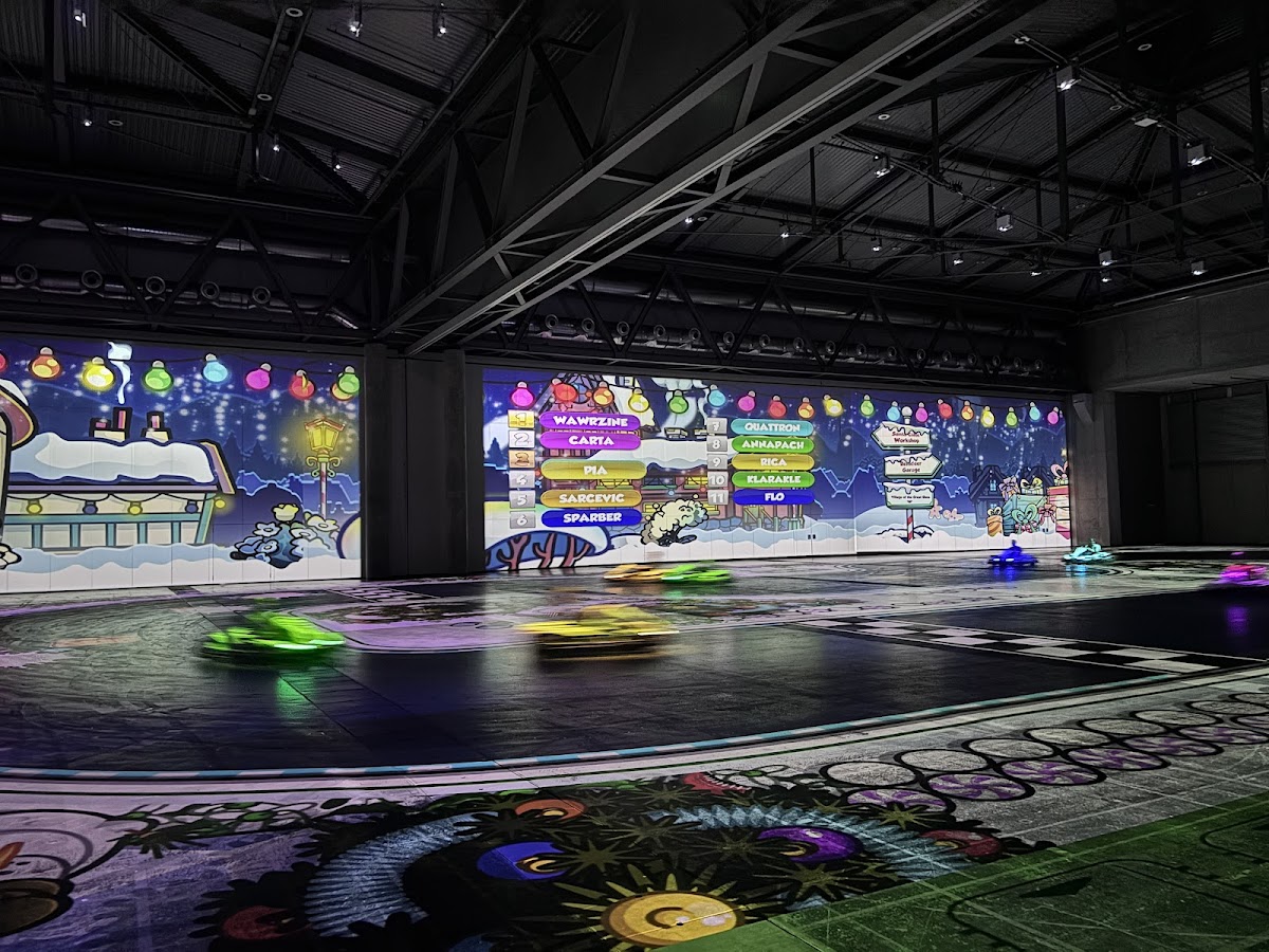 BattleKart verbindet Elektrokartfahren mit Videospielen und interaktiver Projektionstechnologie. Auf einer großen Indoor-Fläche werden digitale Rennstrecken und Spielmodi direkt auf den Boden projiziert. Die Fahrer steuern echte Elektro-Karts, während sie in verschiedenen Spielmodi gegeneinander antreten, Power-Ups sammeln oder Missionen erfüllen. Das Konzept verbindet Motorsport, Gaming und Freizeitpark-Erlebnis und richtet sich an Gruppen, Freunde, Familien und Firmenveranstaltungen.