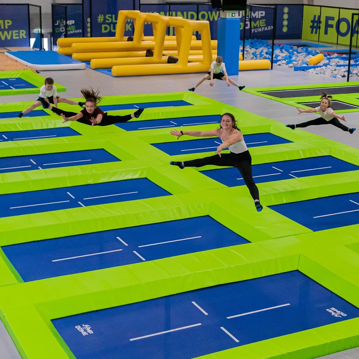 In Linz bietet der JUMP DOME eine große Indoor‑Freizeitanlage rund um Trampolinsport und Bewegung. Die Halle ist mit zahlreichen miteinander verbundenen Trampolinflächen ausgestattet, die unterschiedliche Sprung‑ und Bewegungsformen ermöglichen. Besucher können hier frei springen, Tricks üben oder sich in verschiedenen Parcours‑Bereichen ausprobieren.