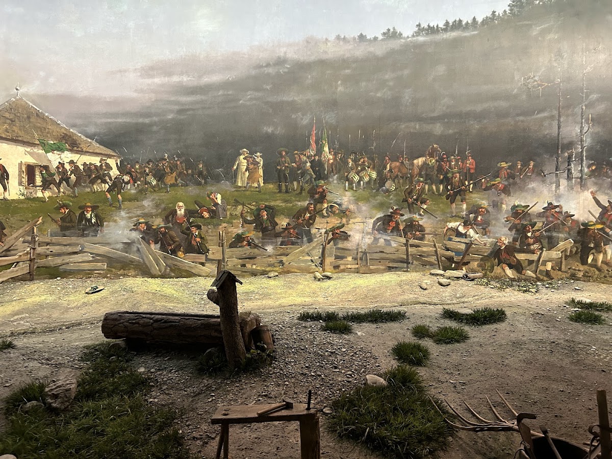 Im Mittelpunkt steht das beeindruckende Innsbrucker Riesenrundgemälde. Auf einer mehr als 1.000 Quadratmeter großen Leinwand zeigt es die dritte Schlacht am Bergisel im Jahr 1809 während der Tiroler Freiheitskämpfe unter Andreas Hofer. Das monumentale Panoramabild vermittelt Besuchern einen eindrucksvollen Eindruck der historischen Ereignisse und der damaligen Landschaft.